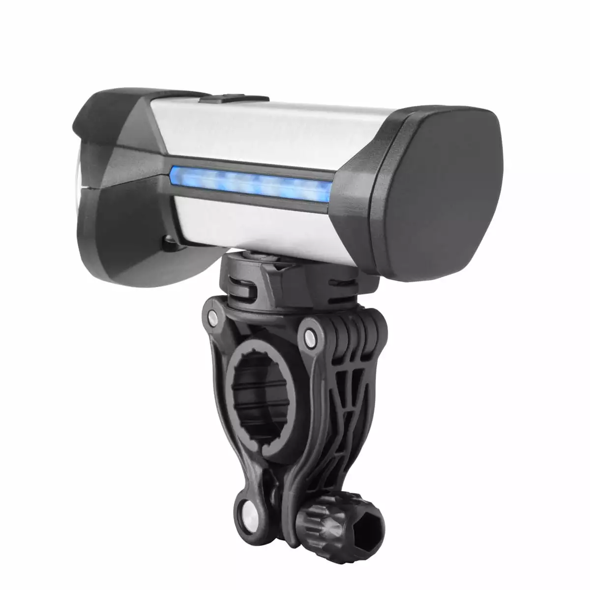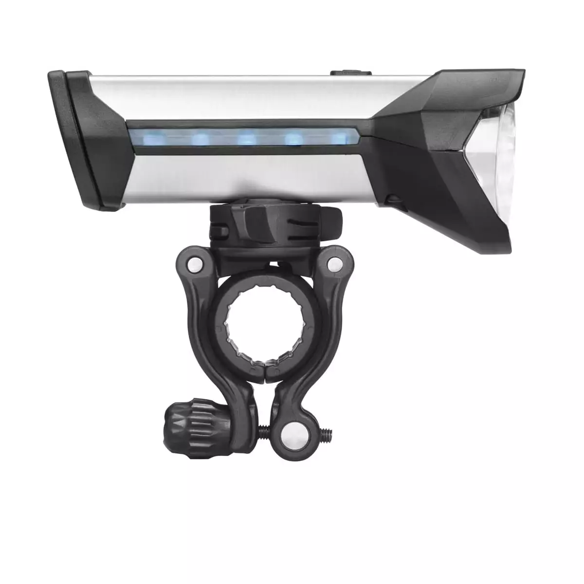 The front light is not only very bright, it also produces a very wide, homogeneous and far-reaching field of light. A practical element is the side-mounted charge indicator, which consists of five LEDs, one of which lights up for every 20% remaining battery capacity. This way, the rechargeable light gives you reliable information about the remaining charge.