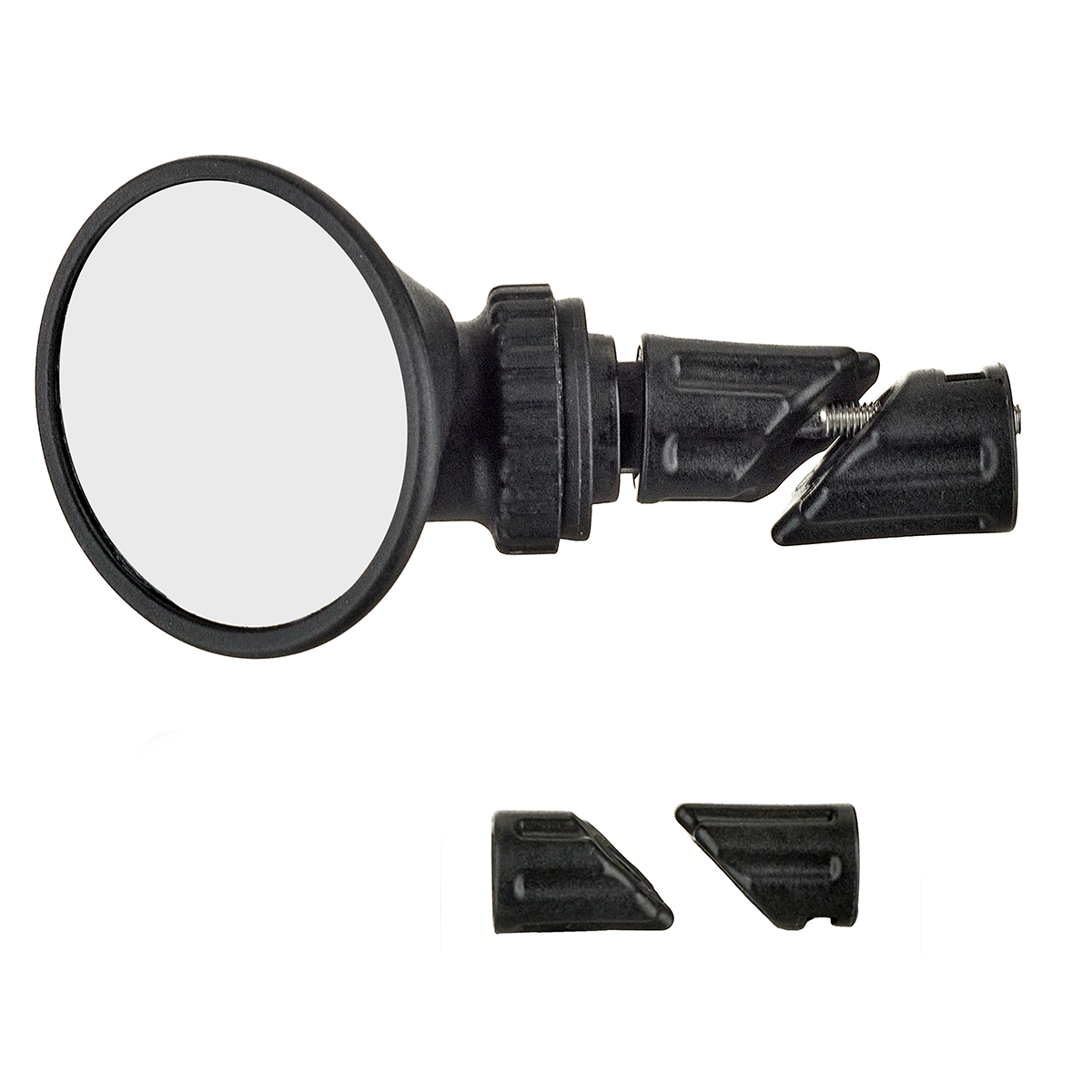 The rear-view mirror is securely clamped inside the tube at the end of the handlebar and blends in well with the bars thanks to its organic shape. Thanks to its oval shape, the mirror protrudes to the side just enough to offer you best vision. A ball joint with a 360° rotation inside the mirror allows you to easily adjust the position of the rear-view mirror in no time using the clamp bolt. If necessary (e.g. for transport), you can even remove the mirror housing of the Rücksicht S without tools via the screw connection and re-align it within seconds.
