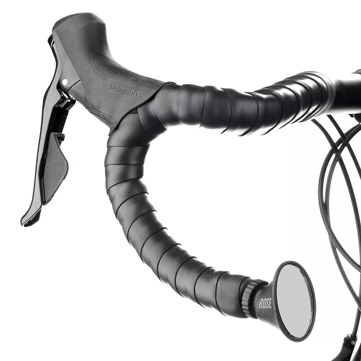 Once fitted to your road or gravel bike, the Rücksicht S bike mirror by ROSE offers a good view of the traffic behind you when you’re riding your bike. The small mirror is mounted on the drops to increase passive safety. The oval mirror allows you to see at a glance what’s happening behind you so you don’t have to turn your head.