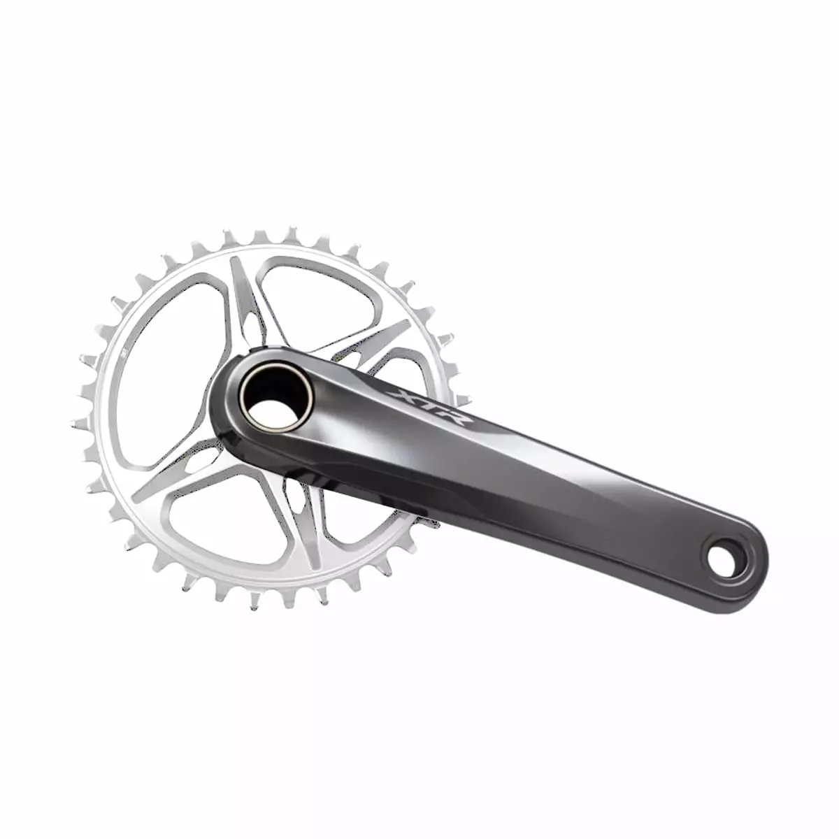 The XTR FC-M9100 Hollowtech II crankset by Shimano is made from hollow forged aluminium, yet does without a spider. Thanks to high stiffness values and a low weight, it is the first choice for XC and Enduro racing. The crank has not only received a facelift, but it is now even lighter than its predecessor. Therefore, Shimano uses a Direct Mount standard with BB lock ring to mount the chainrings on the 12-speed crankset. A 52 mm chainline increases performance for the Boost standard as well as for 135/142 mm, thanks to the special design of the inner link plates of Shimano’s CN-M9100 Hyperglide+ chain. This securely holds the chain on the 4-arm chainrings with dynamic chain engagement (DCE+). For XC and Enduro riders who prefer singlespeed systems, Shimano offers a wide range of chainrings from 30 to 38 teeth.