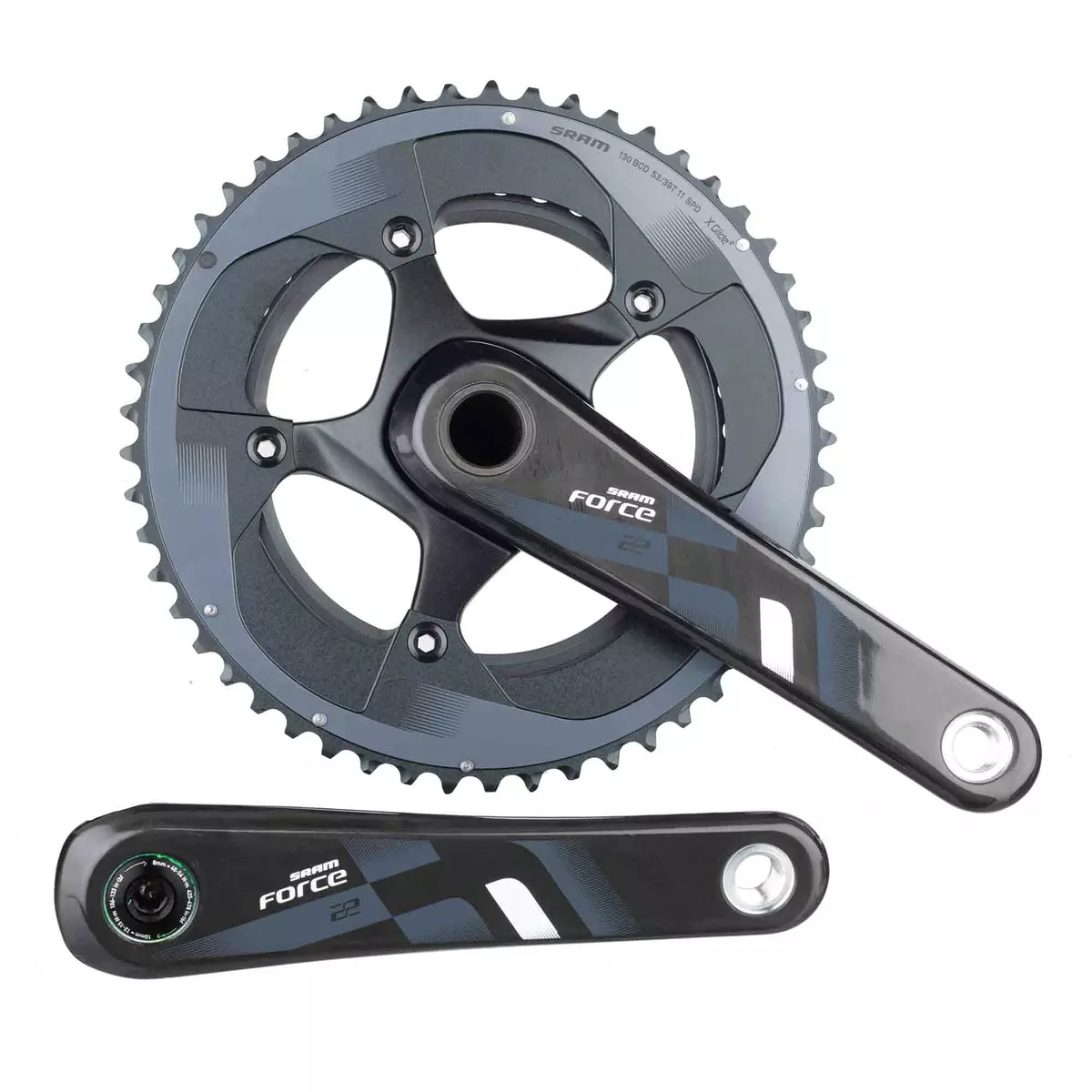 The SRAM Force 22 crankset delivers an upgrade in performance by utilising unidirectional carbon fibres in the crankarm. This brings the power of your legs even more effectively on the road. The look and the design is further enhanced by the curved aluminium spider and the X-GlideR chainrings. This structured combination has led to a stiff and weight-reduced SRAM Force 22 crankset, which will make your ride even more enjoyable.