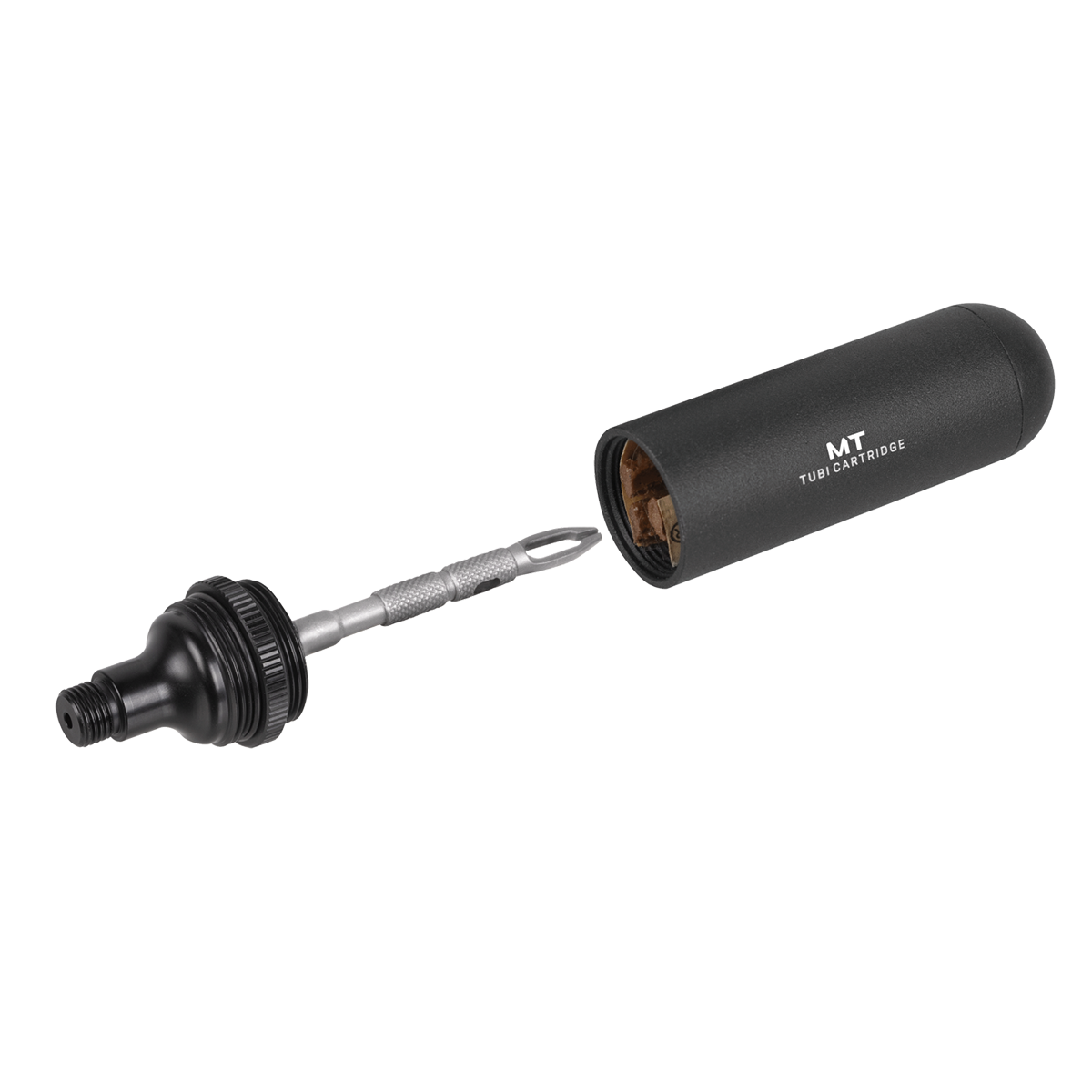 Patching and filling in one operation: The TubiCartridge Mt. from Topeak makes repairing tubeless tyres a matter of seconds. In combination with any CO2 inflator and cartridge, you can insert the tubeless patch into the damaged area and start immediately with the CO2 pressure filling. As soon as you have pulled out the plug piercer and removed the remains of the plug, the journey can continue.